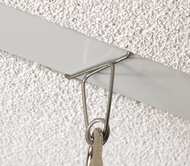 Клипса из металлической проволоки для быстрого крепления вывесок и плакатов к направляющим подвесного потолка.