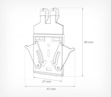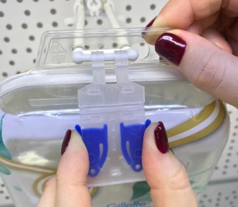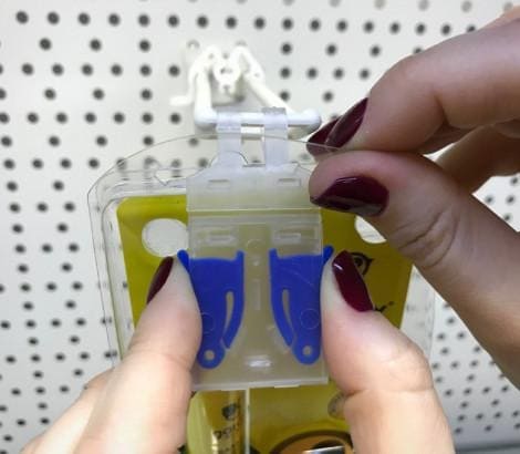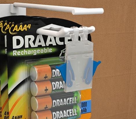 Противокражное устройство защищает товары, размещенные на двойных крючках. HOOK-GUARD оснащен по бокам кнопками, которые не дают за один раз снять с крючка больше одной упаковки. При снятии покупатель использует обе руки, что служит дополнительной защитой, не давая возможности ворам легко и быстро забрать товар. HOOK-GUARD не потеряется, он надежно крепится к крючку. HOOK-GUARD не является ценникодержателем.