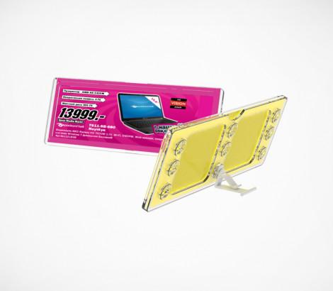 Универсальная рамка-ценникодержатель формата 1/4 А4 с 9 гнездами для установки на полке, фиксации на край полки, крепления на перфорацию. Прорезь для вставки по широкой стороне. Вставки используются без защитных протекторов. Размер вставки 210 х 74 мм.