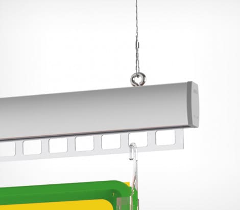 Перфорированная вставка позволяет изящно подвесить информационные сообщения, не отвлекая на себя внимания потенциальных покупателей. С помощью аксессуаров пластиковые рамы, карманы, прайс-дисплеи, плакаты и другие варианты представления информации легко крепятся на профиль.