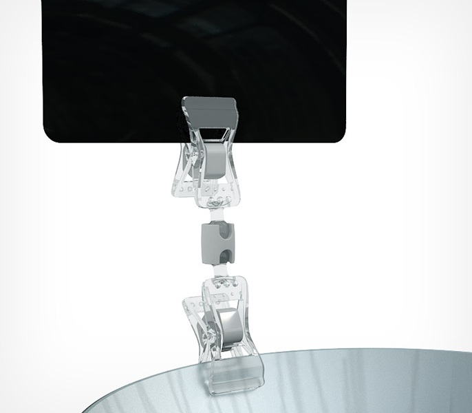 Прищепка малая двойная FXS-DBL — универсальный ценникодержатель, состоящий из двух прищепок. Одна из них крепится на торец полки, край коробки, корзины, блюда толщиной до 10 мм, а другая непосредственно держит ценник