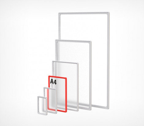 Комплект настенной перекидной системы «Рейка» с  рамками «PF»,  для размещения информации формата  А-4. Вертикально или горизонтально. Информация  легко меняется.