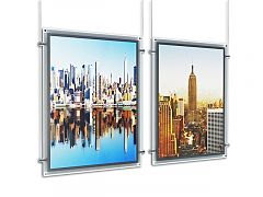 Подвесные системы позволяют использовать торговую площадь магазина максимально эффективно. Именно подвешивание профилей с пластиковыми рамками илиинформационными рекламными плакатами может обеспечить удобное и быстрое информирование потребителей. Такие системы привлекают внимание за счёт своих размеров и ярких цветов.