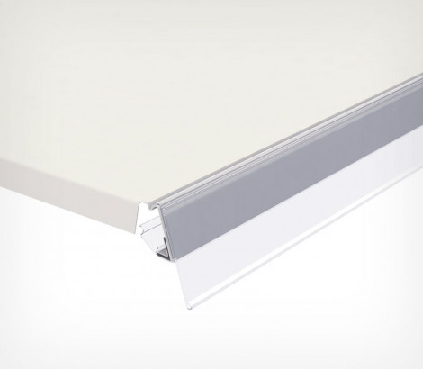 Ценникодержатель для полок MODERN EXPO. Гибкое крепление обеспечивает откидывание ценника вверх.