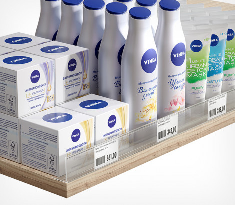 Ценникодержатель ME — это полочный самоклеящийся держатель для ценников и брендированных вставок. Используется для удобного размещения ценников на полках магазинов, особенно в магазинах косметики, аптеках и магазинах формата Drogerie.