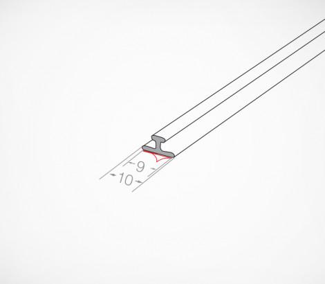 Т-профиль T-RAIL10 ш. 10 мм без ограничителя крепление скотч — Т-профиль предназначен для монтажа на стеклянную, деревянную или металлическую полку замковых разделителей, толкателей или профиля для задней опоры. Рекомендуется использовать для крепления разделителей.